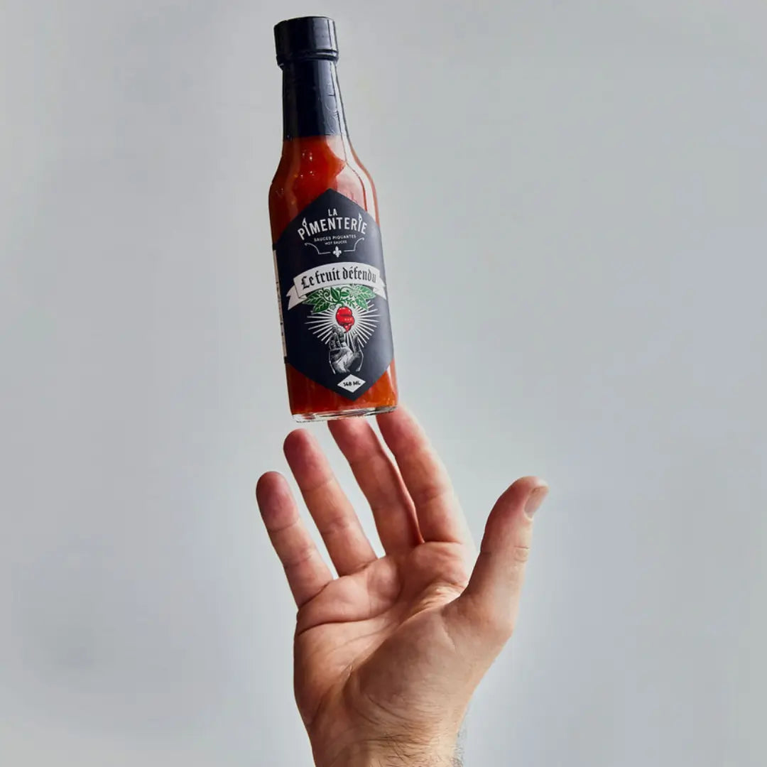 Sorry, we couldn't help ourselves. Nothing will ever be the same again... The Forbidden Fruit Extra Hot is a blend of some of the most formidable fermented chili peppers: Scorpion, Bhut Jolokia, red and chocolate Habanero... A cult-like sauce, uncompromising, reserved for daring palates.